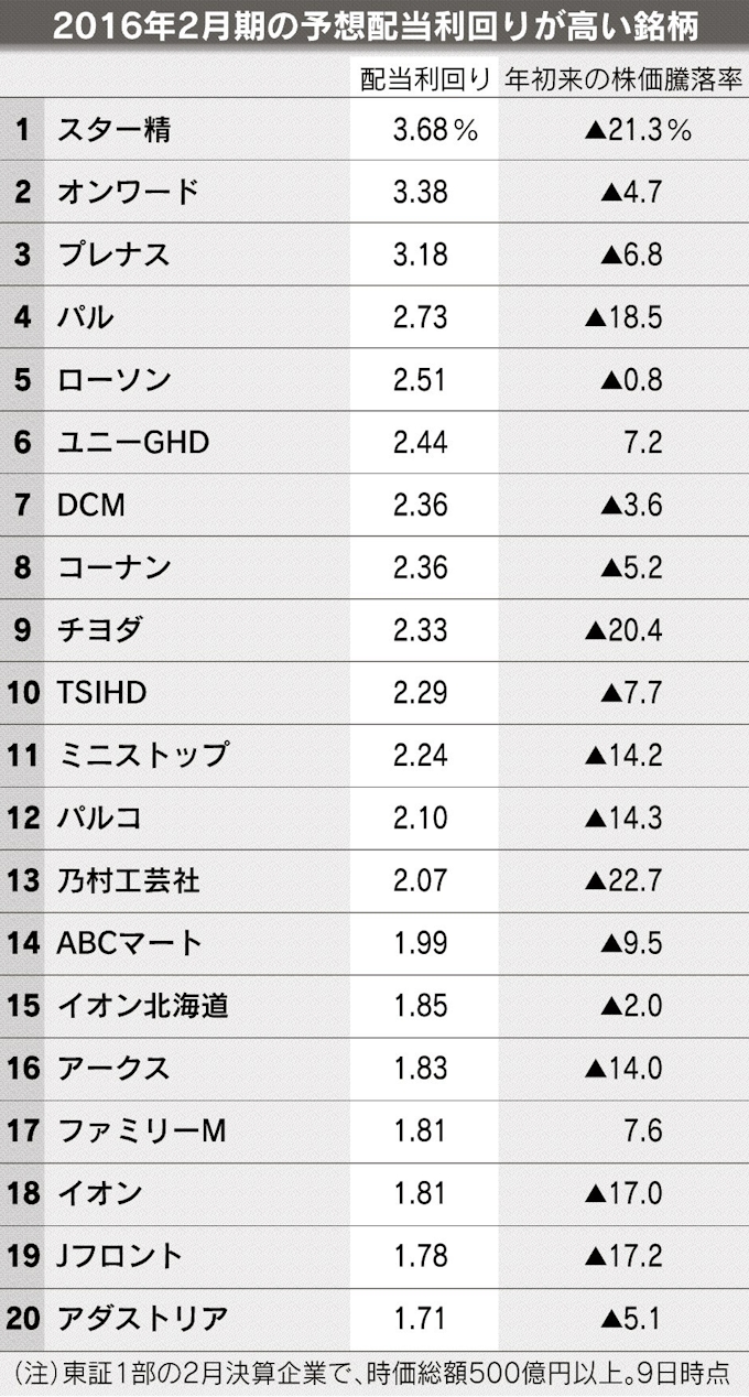 2月期企業の予想配当利回り 日本経済新聞