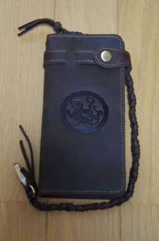 Handmade ハンドメイド の 和柄財布チェーン付き 牛革 レーザーウォレット 本格長財布 一点物 本革 和風 メンズ ウォレットチェーン Wear